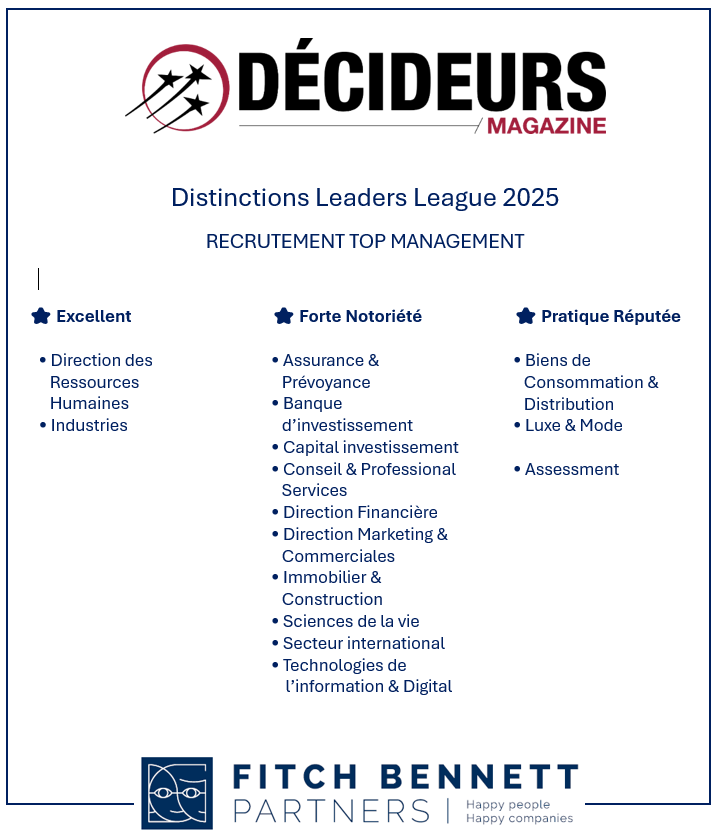 Le magazine Décideurs a de nouveau classé Fitch Bennett Partners parmi les cabinets de référence en recrutement Top Management.